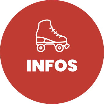Rollschuhe (Größe 32–47) und Schoner könnt ihr vor Ort ausleihen oder eure eigenen mitbringen. Inliner sind bei der abendlichen Rollrdisco nicht erlaubt. Die Verfügbarkeit von Leihrollschuhen ist nicht garantiert. Zu Beginn der Rollerdisco wird es eine kleine Einführung ins Rollschuhfahren geben.